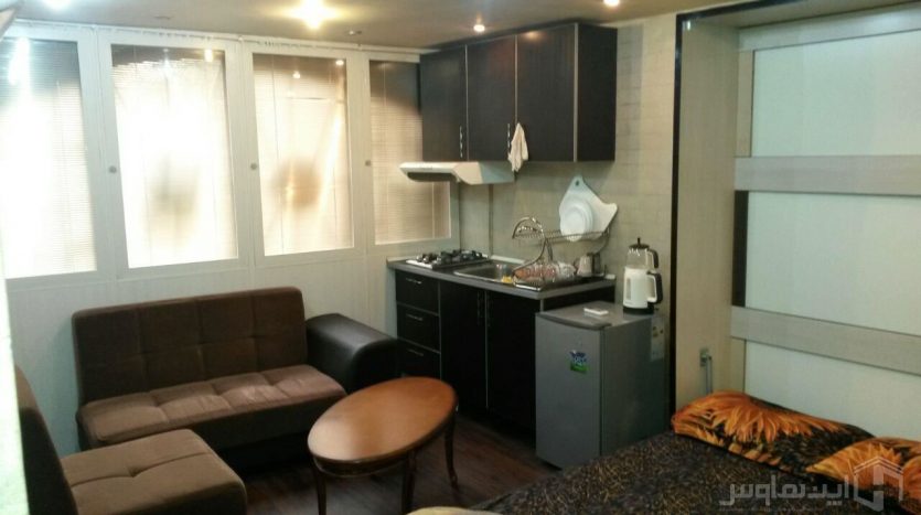 A small cemi furnished apartment in east of Tehran for daily and monthly accommodation,with 50 sqm , Air Condition (heating and cooling system) in living room,1 bedroom, furnished kitchen&chairs .Turkish toilet .Lighting the building is from south.It is located in the 4 storey building in Pasaran area in north of Tehran with Convenient to reach Sadr highway, Pasdaran & Shariaty street. British Embassy Garden is in Shariaty street too.